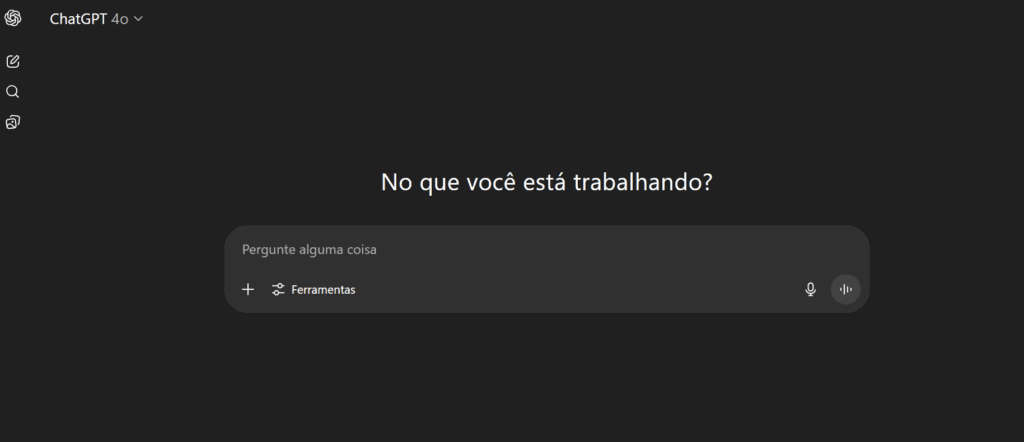 Não se preocupe com todas as opções e botões que aparecem na tela. Por enquanto, foque apenas nessa caixa de texto. É ali que a mágica acontece. Pense nela como o WhatsApp da inteligência artificial – você digita, aperta enter, e recebe uma resposta.